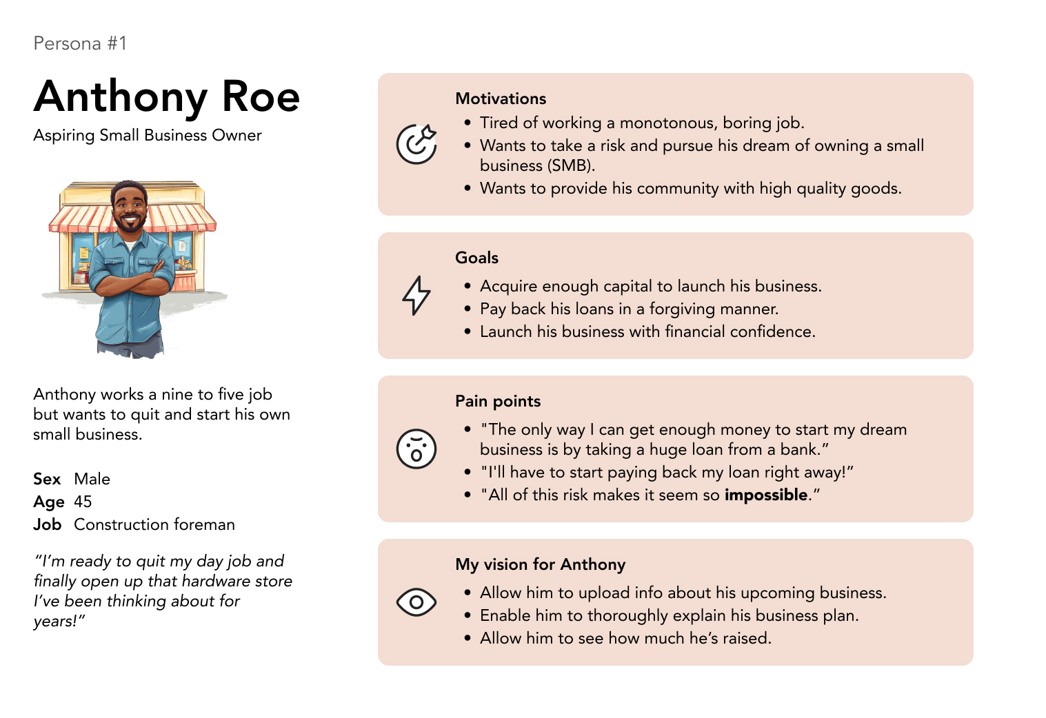 Designing a fintech startup that enables aspiring business owners to crowdfund capital.