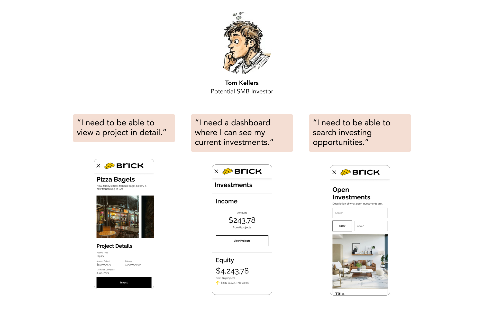By this point I knew that our product had a place in the market, I knew who our users were, and I had a detailed outline for our product. Thus it came time to begin wireframing, and I was able to wireframe in rapid time because I had carefully maintained our requirements. I used our personas to make the following designs based upon their needs.