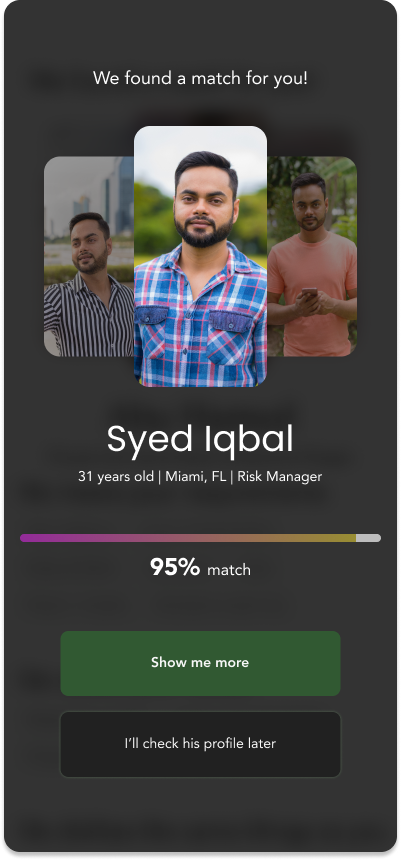 Our team saw a problem in the Muslim community in NYC: many Muslims struggle to find suitable partners for marriage, and many of these candidates express frustration with contemporary solutions designed to help Muslims get married.